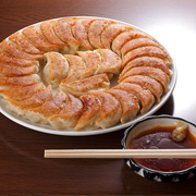 円盤餃子 - たくさんの餃子を丸いフライパンに並べて一度に焼き、そのまま皿にひっくり返して提供する名物餃子。野菜中心の餡を使ったヘルシーな餃子で、女性でも気軽に楽しめます。
