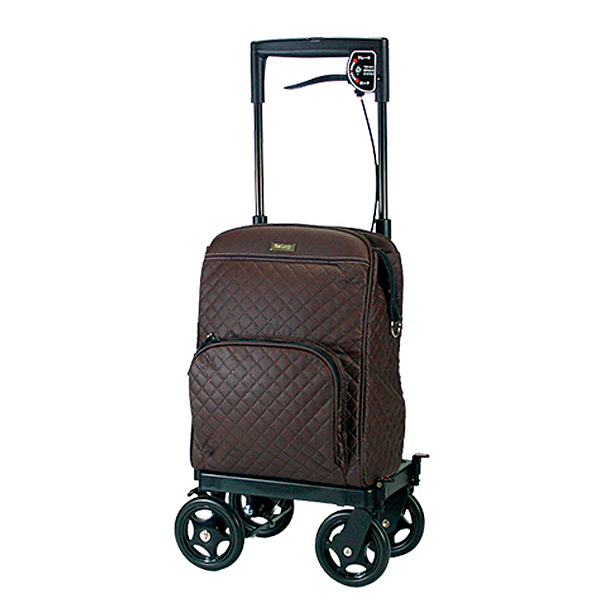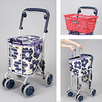 - 座面内側内部にカゴ止バンドが搭載され、買い物カゴをしっかり固定できるため、手でカゴを持つ必要がありません。操作性の良さとしっかり体を支える安定性を両立した新型ハンドル、ストッパーボタンを押すだけのワンタッチ簡単パーキングブレーキを採用。身体に合わせてハンドルの高さを4段階で調整でき、折りたたみ時もレバーを上下に動かすだけの簡単操作もポイントです。持ち運びしやすい取っ手付きで、お買い物をぐっと便利にします。さらに通常使用時はイス部が見えない上品なデザインは使用時のみ形が変わってイスになる座面で、疲れたときにも役立ちます。