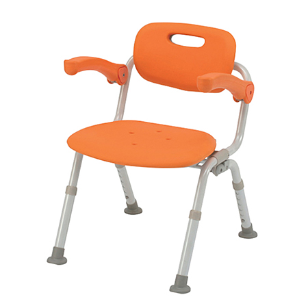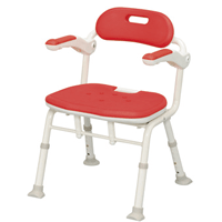 - 狭い浴室内でも後輪3インチキャスターで小回りが効いて、前輪が8インチのため、段差乗り越えもらくな超コンパクト設計のシャワーキャリーです。移乗の際は、『フット・サポート』が前後にスライドし、『アームサポート』は跳ね上げ式でスムーズな移乗が可能です。