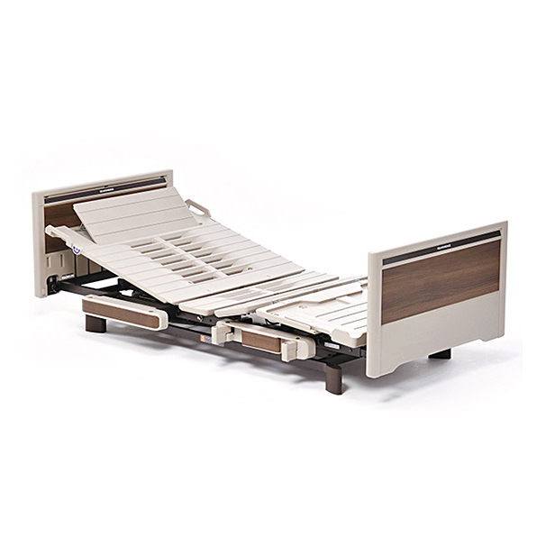 - 背上げの際にベッドに傾斜を加えて、「ズレ」と「腹圧」を大幅に軽減した高機能介護用ベッド。まったく新しい背上げ機構(ラクリアモーション)により、身体のズレが大幅に減少。ベッドが傾斜して足先が下がることで、座位に近い姿勢をとることができます。