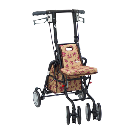 - 細部にまでこだわり抜いた歩行車。左右折り畳みで収納コンパクト。