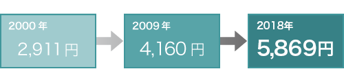 介護保険の運営責任者(保険者)は市区町村で、40歳以上の国民が毎月支払う介護保険料は市区町村によって異なります。65歳以上の第1号被保険者が支払う保険料は、介護保険施行年の2000年は全国平均2911円でしたが、高齢者の増加、介護保険利用者の増加により3度の改正を経た2009年には4160円にまで上昇し、2018年の改正では5869円になりました。